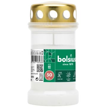 Extra voordelig 12 stuks van de beste witte grafkaarsen en graflichten kopen voor herdenkingsavonden bij grafplaatsen of op plekken van stilte en rouw. Deze Bolsius "nummer 3" kaarsen met stalen deksel, branden perfect op, hebben een erg lange brandduur en roeten niet. Deze graflichten in transparante houder en goudkleurig deksel is bestand tegen weersinvloeden zoals regen en wat wind. De kleur is wit en de houder is transparant. De perfecte grafkaars om op een begraafplaats te plaatsen ook ideaal voor in een lantaarn te zetten. Een mooi graflicht om de dierbaren te herdenken, deze speciale binnen- en buitenkaarsen staan niet voor niets voor het eeuwige leven. Afmeting hoogte 130 mm x diameter 58 mm ( 13 cm x 5,8 cm ) Brandduur 50 uur, ( circa 2 dagen ) Bolsius Nr. 3 transparant / wit Aantal 12 stuks